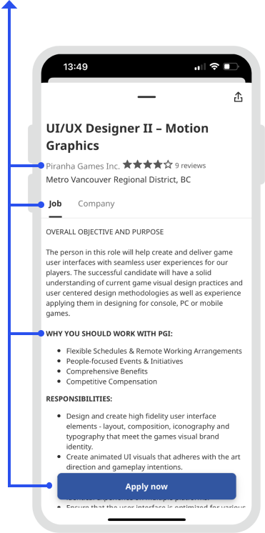 Job info page: