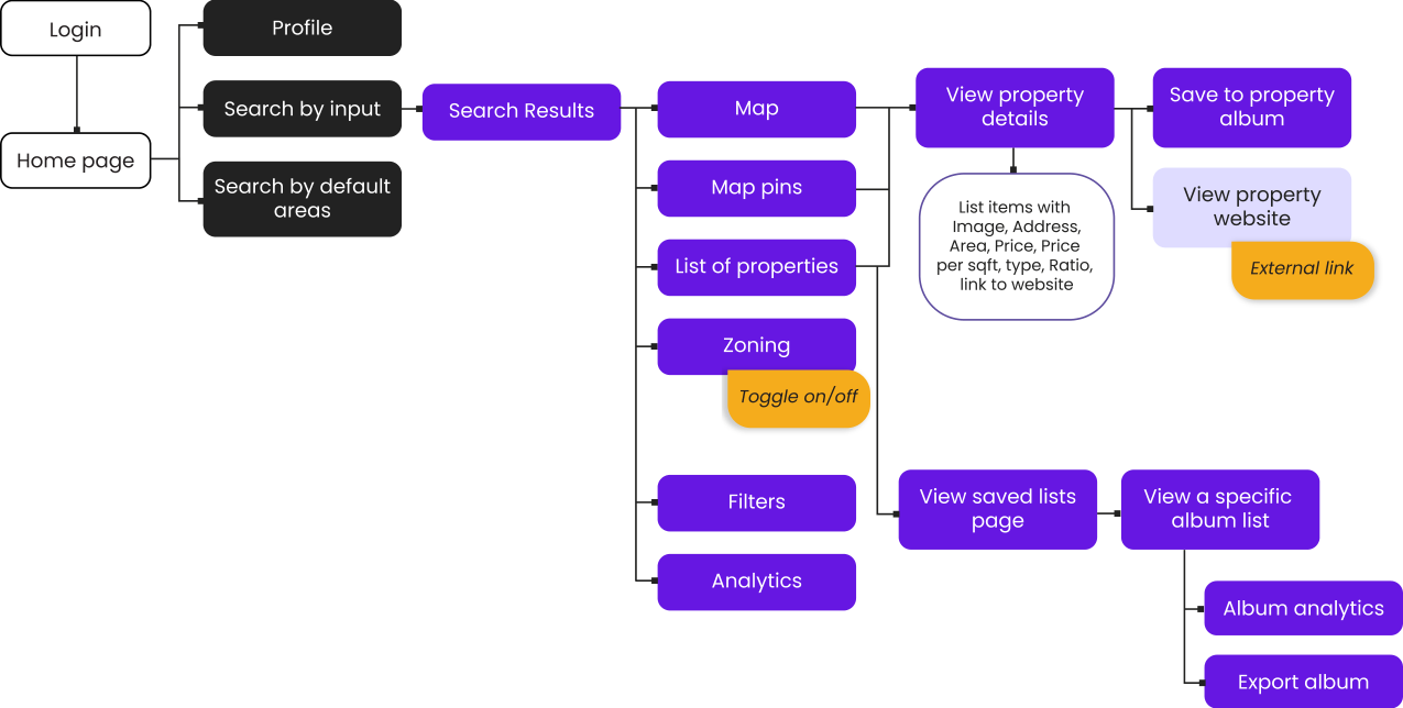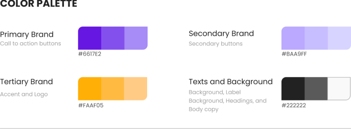 We chose purple as our primary color since it’s a color used in high-end brands that helps us communicate trust and efficiency, and yellow is our accent color because of its great contrast with purple and its vibrancy, perfect to highlight our calls to action. Our typographies, New Order and Poppins, have outstanding readability and are very clean as our logo to maintain a professional look all throughout our brand, where we carefully designed each icon and button so everything works together as a whole
